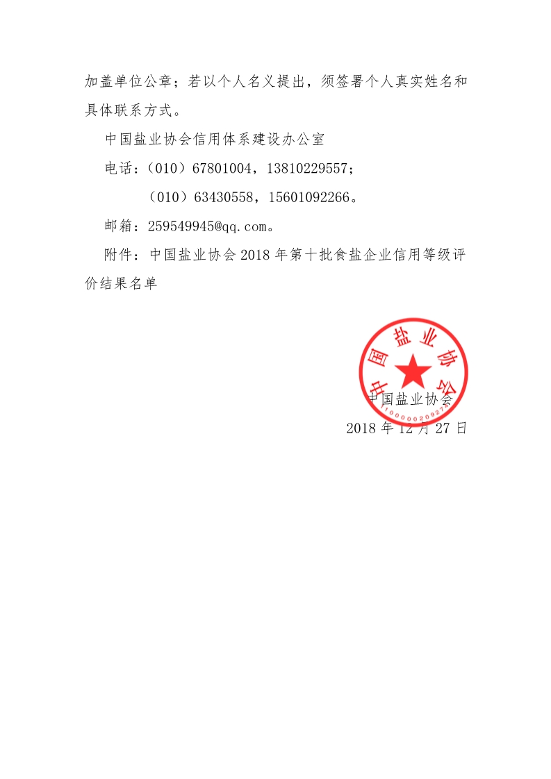 中国盐业协会2018年第十一批食盐企业信用等级评价结果公示……