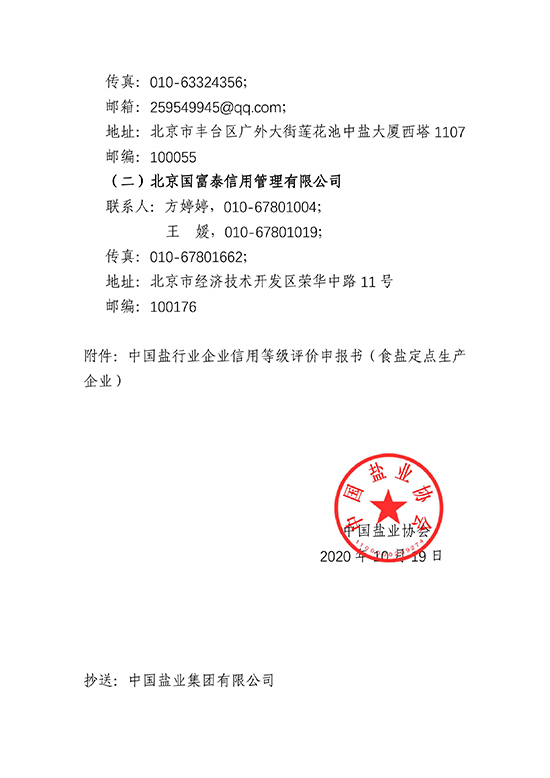 关于开展食盐定点生产企业信用等级评价工作的通知。
