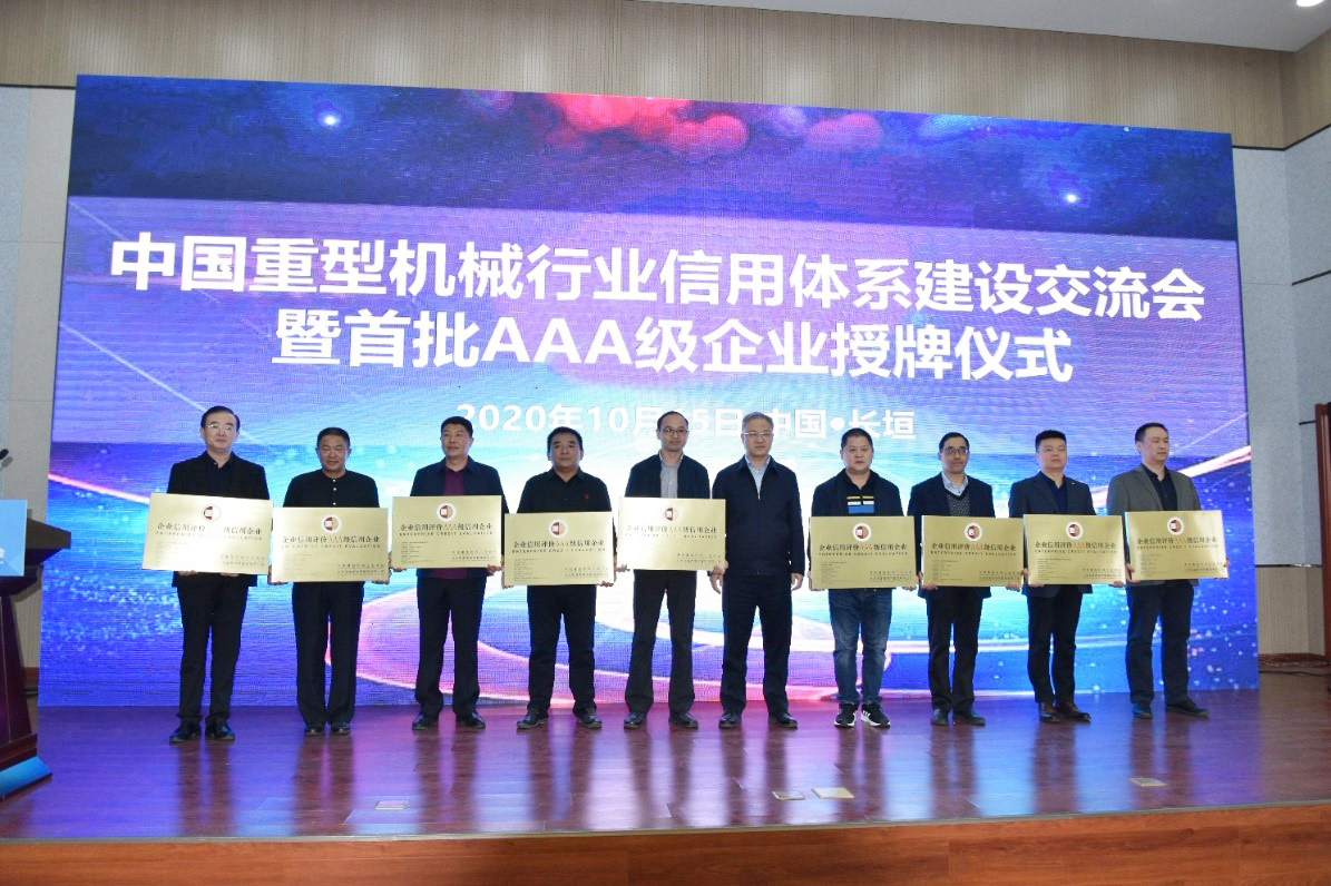 会上,中国重型机械工业协会理事长韩珍堂为首批47家AAA级企业颁发信用等级认证牌匾。